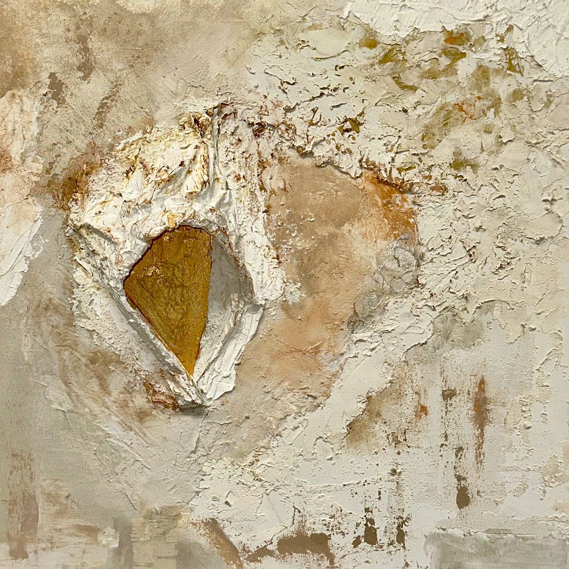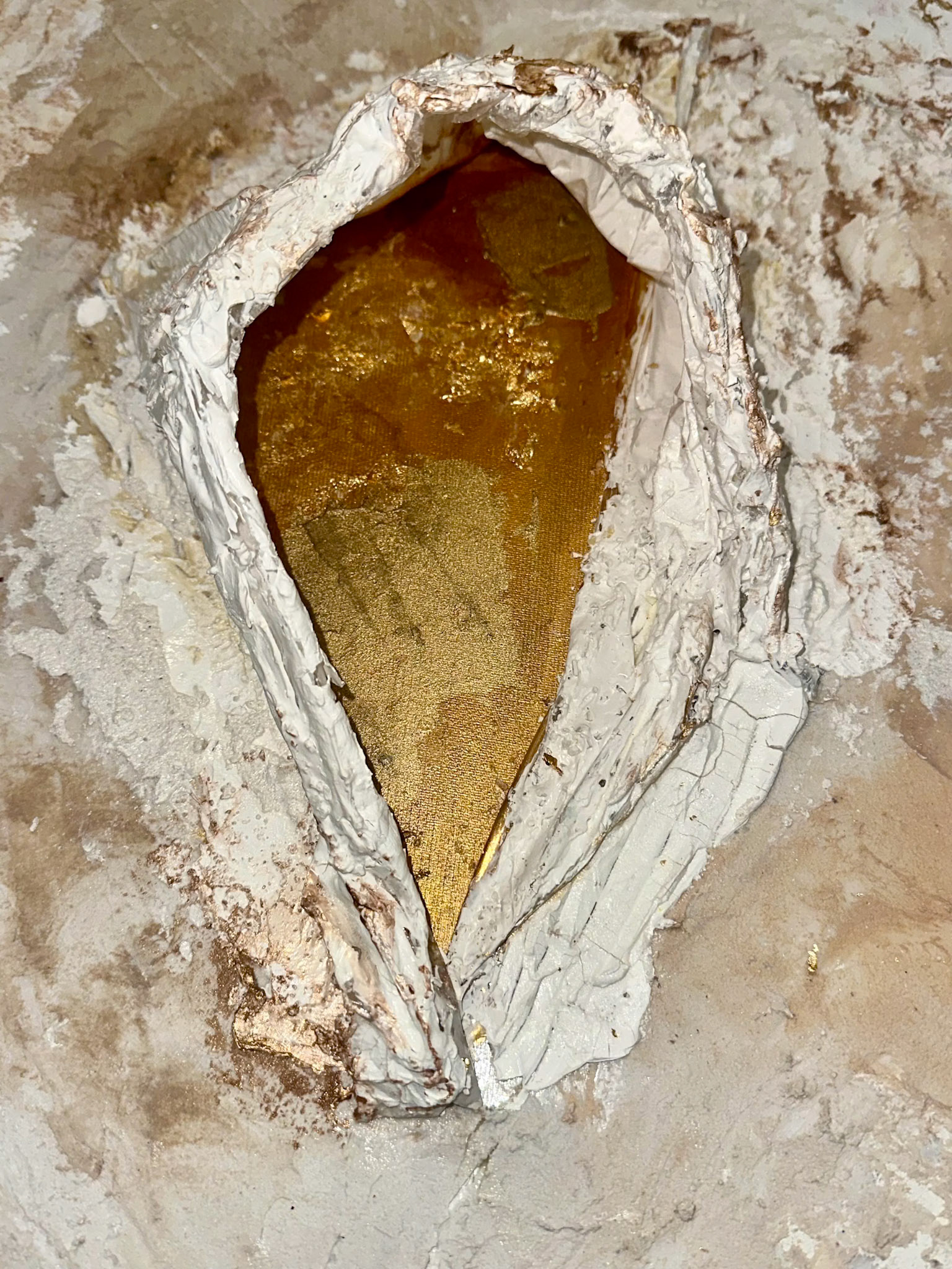 Vulcano is a deeply personal piece, born from my travels to the volcanoes of Lanzarote, Etna, and Stromboli. The structure was initially formed with plastic foil, but it was through the use of marble paste that the piece truly came alive, capturing the raw power and fragile beauty of volcanic landscapes. The golden interior, symbolizing metallic lava, contrasts with the textured surface, evoking the slow, yet unstoppable forces beneath the earth.